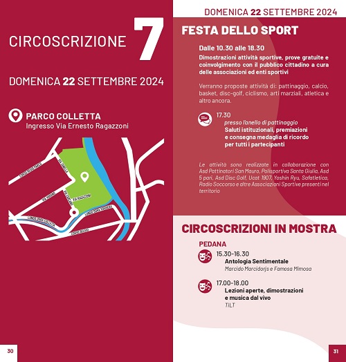 Gli eventi si svolgeranno domenica 22 settembre 2024, presso il parco Colletta, con ingresso da via Ernesto Ragazzoni.