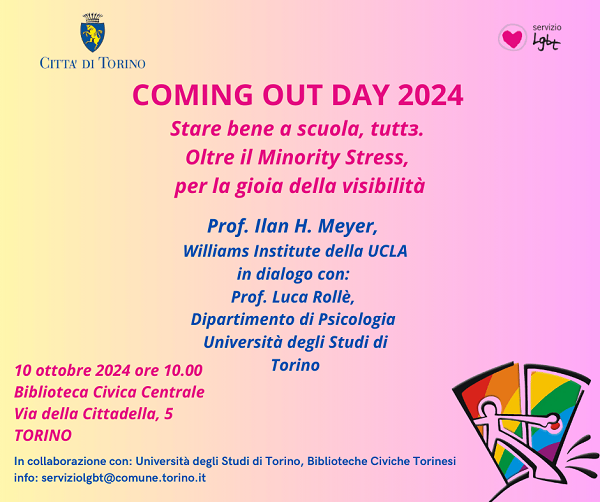 In occasione del Coming Out Day, giovedì 10 ottobre 2024 dalle ore 10.00 alle ore 11,30 presso la Biblioteca Civica Centrale,