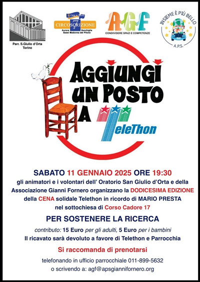 Chi fosse interessato a sostenere la ricerca scientifica Telethon contro le malattie genetiche,può prenotarsi entro le ore 12:00 di giovedì 9 gennaio 2025.