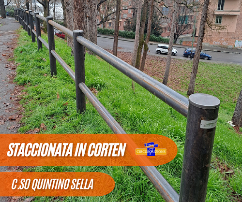 Negli ultimi giorni, la vecchia staccionata in legno di Corso Quintino Sella č stata sostituita da una nuova staccionata in acciaio Corten.