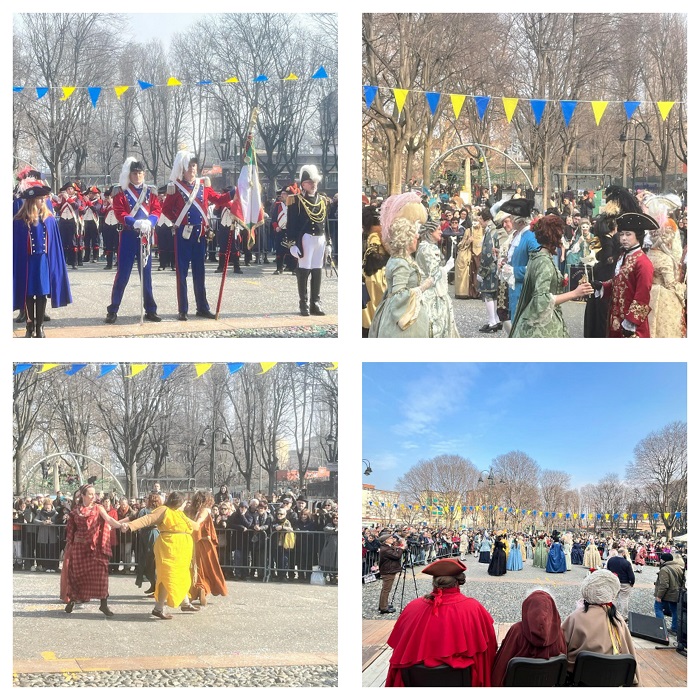 Investitura de La Rusnenta con Gianduia e Giacometta. Sfilata domenicale con abiti storici per le vie del Balon