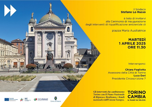 Martedì 01 aprile 2025, alle ore 11,30, si terrà la cerimonia di inaugurazione degli interventi di riqualificazione ambientale di piazza Maria Ausiliatrice.Vi aspettiamo!