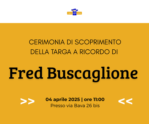 di Fred Buscaglione, che si terrà venerdì 4 aprile 2025 alle ore 11:00 in via Bava 26 bis.