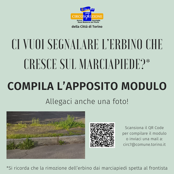 La Circoscrizione 7 invita i cittadini e le cittadine a segnalare la presenza di escrescenze erbacee, il cosiddetto "erbino", sui marciapiedi.