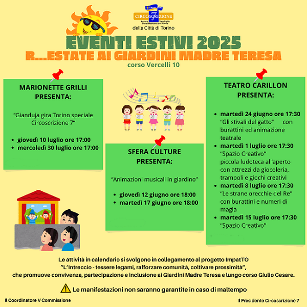 "R...Estate ai Giardini Madre Teresa" č il titolo del cartellone di appuntamenti che la Circoscrizione 7 propone