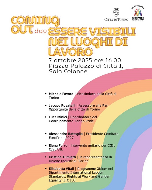 Martedì 07 ottobre 2025 alle ore 16:00, presso la Sala Colonne in Piazza Palazzo di Città 1,si terrà un evento in occasione del Coming out day.