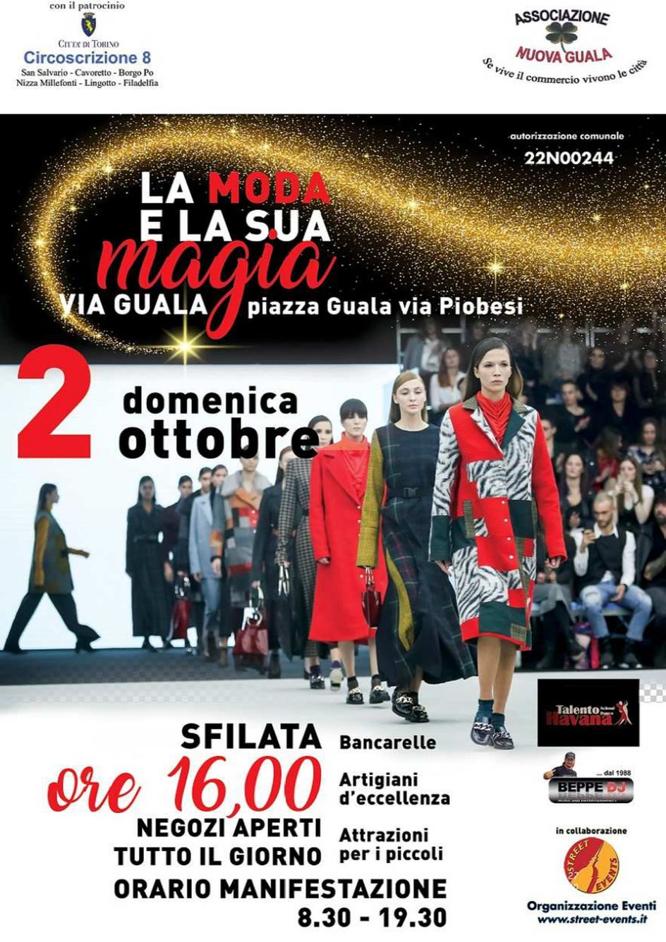 Con il patrocinio della Circoscrizione l'Associazione "Nuova Guala"come soggetto promotore ha l'obiettivo di svolgere una manifestazione denominata "La moda e la sua magia" con l'intento di promuovere e valorizzare le attivitā commerciali nell'area del territorio tra via Guala e c.so Traiano. Il tema centrale dell'evento č la moda, per cui verranno coinvolti i negozianti di abbigliamento, borse, scarpe e accessori che faranno sfilare le proprie clienti con i capi e complementi tratti dalle nuove collezioni autunno-inverno. Lungo le vie del quartiere si sposteranno artisti di strada giocolieri, gruppi di maghi e saranno invitate le scuole di ballo del territorio che animeranno tutta l'area coinvolta.