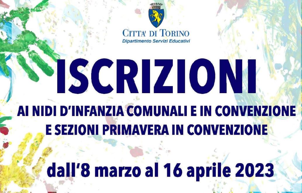 La domanda di iscrizione ai nidi d'infanzia dovrà essere presentata online sul portale TorinoFacile dalle ore 8.00 dell'8 marzo alle ore 16.00 del 16 aprile 2023.