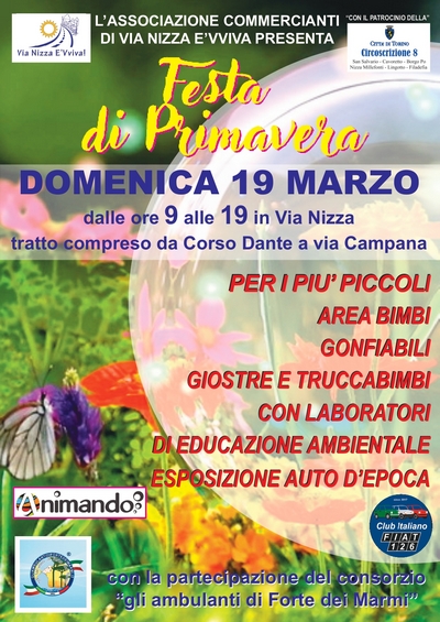 Con il patrocinio della Circoscrizione 8, l'Associazione Commercianti di via NIzza E'VVIVA presenta la "Festa di Primavera"