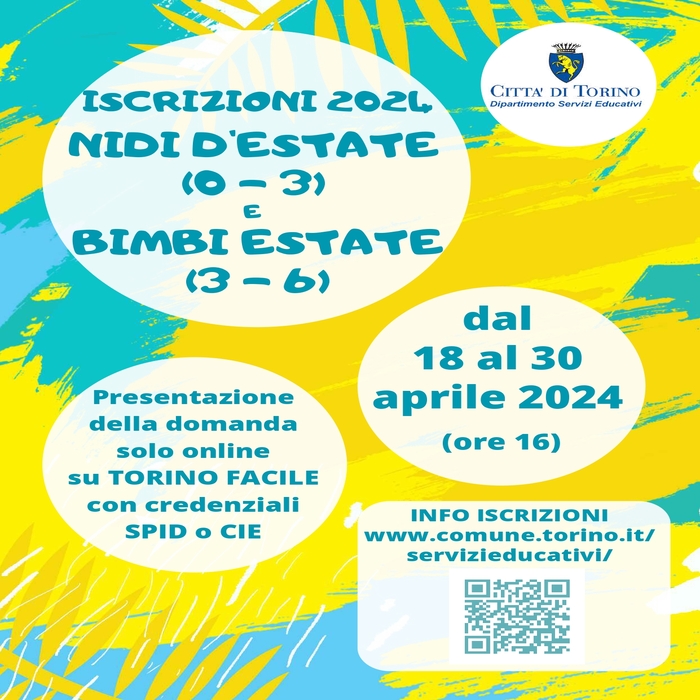 La domanda d'iscrizione dovrà essere presentataesclusivamente online su Torino Facile concredenziali SPID o CIE dalle ore8.00 del 18 aprile alle ore 16.00 del 30 aprile 2024.Per tutte le informazioni è possibile consultare il sito: