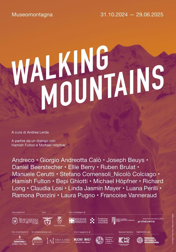 La mostra "Walking Mountains", a cura di Andrea Lerda, sarą esposta al Museo della Montagna dal 31 ottobre 2024 al 29 giugno 2025. Si tratta della tappa conclusiva di un percorso di ricerca incentrato sul cammino, avviato a novembre 2023 con l'esposizione "Stay with Me. La montagna come spazio di risonanza" e confluito nel programma diffuso "Stay with Me. A Whole Growing Exibition". Attraverso le opere di venti artiste e artisti, "Walking Mountains" riflette sull'attraversamento della montagna come esercizio di consapevolezza, possibilitą di contatto tra umano e non umano, presa di coscienza dell'appartenenza degli esseri umani ad un ecosistema pił vasto.La mostra esplora il camminare non solo come gesto artistico, ma come un'esperienza di immersione nella natura e riflessione sul nostro rapporto con il mondo. "Walking Mountains" invita a ripensare il legame tra l'essere umano e il paesaggio, ponendo il cammino come un atto rivitalizzante e, al tempo stesso, sovversivo.Durante l'esposizione sarą presentato un catalogo bilingue che documenta il percorso di ricerca condotto dal Museo tra il 2023 e il 2024.