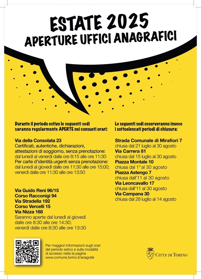 Durante il periodo estivo le seguenti sedi saranno regolarmente aperte nei consueti orari: