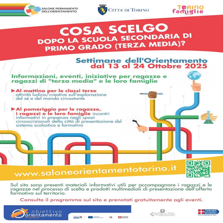 Il programma completo degli appuntamenti delle Settimane dell'Orientamento, con i dettagli per ogni singola iniziativa (date, luoghi, modalità di prenotazione), sarà pubblicato sul sito: https://saloneorientamentotorino.it/ non appena disponibile e in prossimità dell'inizio degli incontri.