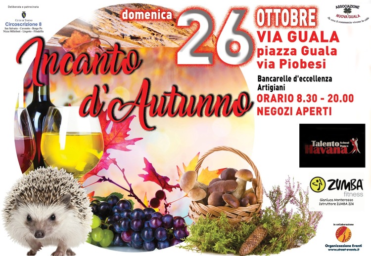 Domenica 26 ottobre 2025 , dalle ore 08:30 alle ore 20:00, si terrą Incanto d'Autunno, la festa di Via Guala, Piazza Guala e Via Piobesi.