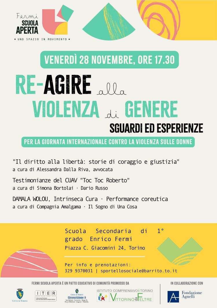 Venerdì 28 novembre alle ore 17:30 ci sarà un incontro presso la Scuola Fermi (Piazza C. Giacomini 24, Torino), in occasione della Giornata internazionale contro la violenza sulle donne.L'evento prevede il seguente programma: